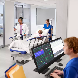 • High-Resolution Display – A 15” touchscreen LED interface that mirrors the look and feel of standard bedside monitors.