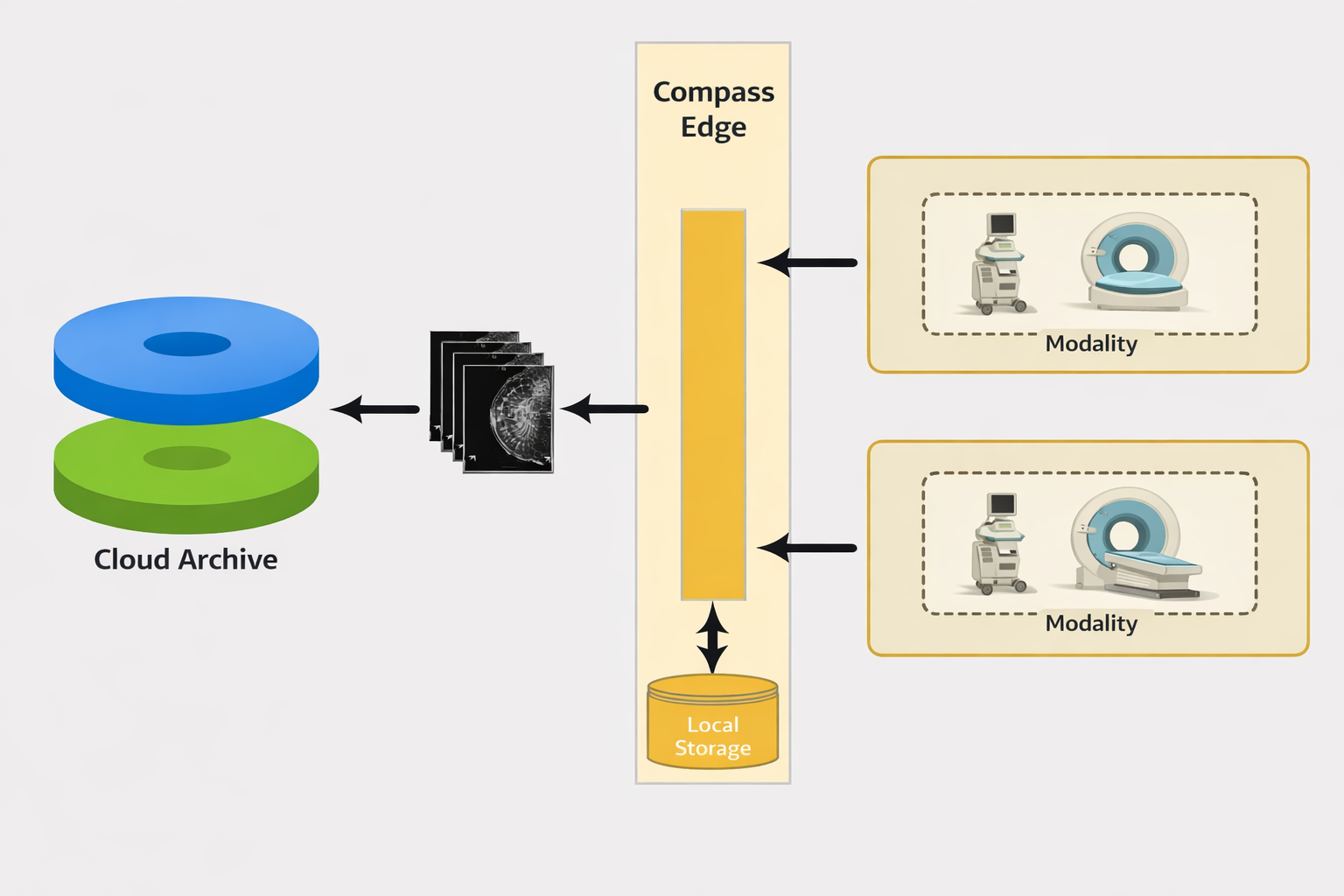 By acting as a proxy between hospital nodes and off-site cloud archives, Compass Edge improves communication efficiency and ensures greater resiliency of business continuity infrastructure.