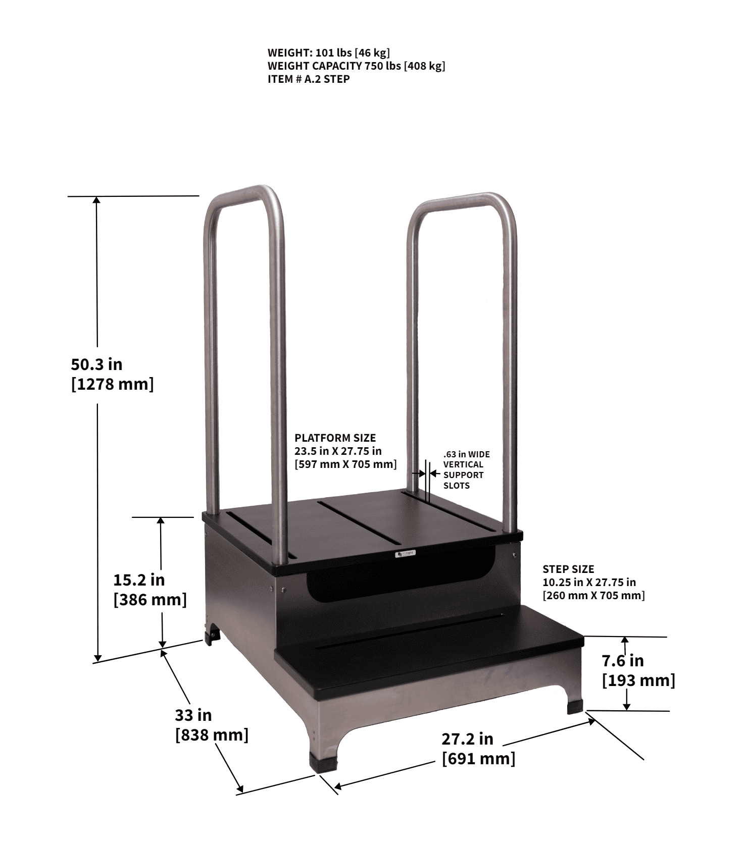 Our 2 Step Platform is constructed of high density HDPE plastic and stainless steel.