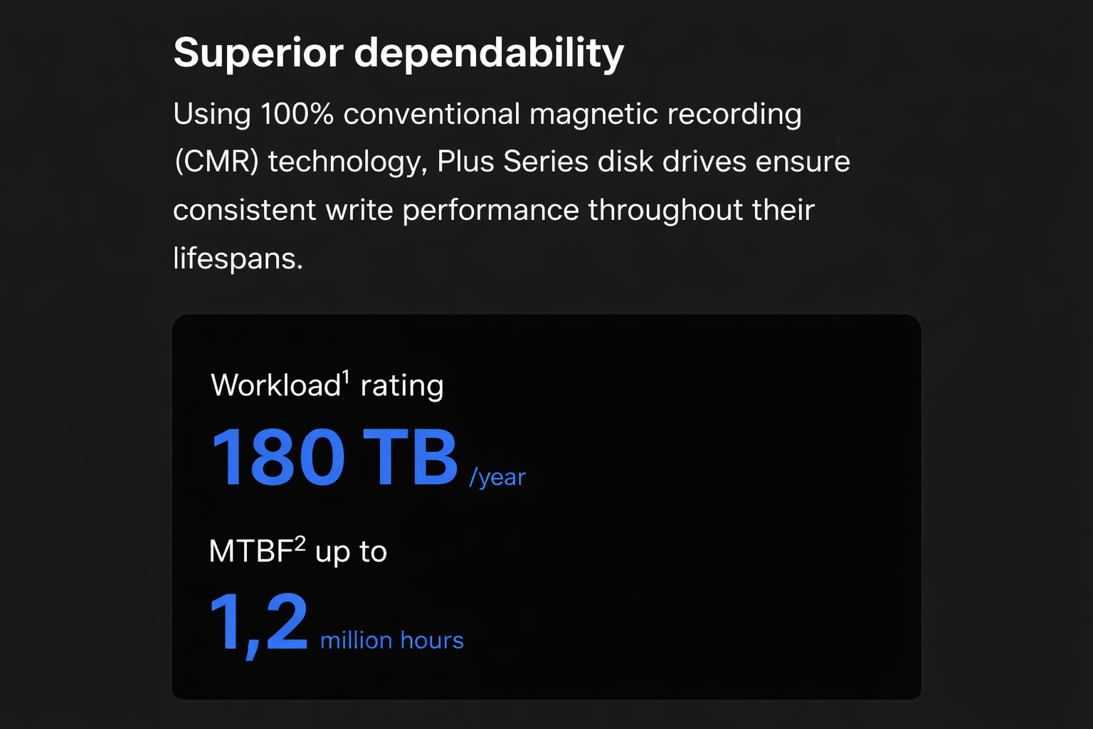 Backed by 1 million hours MTBF and 180 TB/year workload rating - Tested for Maximum Reliability