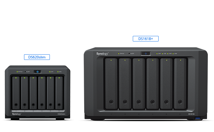 The mini 6-bay design keeps DS620slim classic and saves deployment space. With six 2.5″ drive support, DS620slim is able to boost performance by installing SSDs.