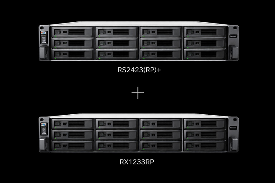 Easily adjust the 2U 12-bay RS2423RP+/RS2423+ to match the usage of your environment, whether it needs performance, faster networking, or higher storage capacity.