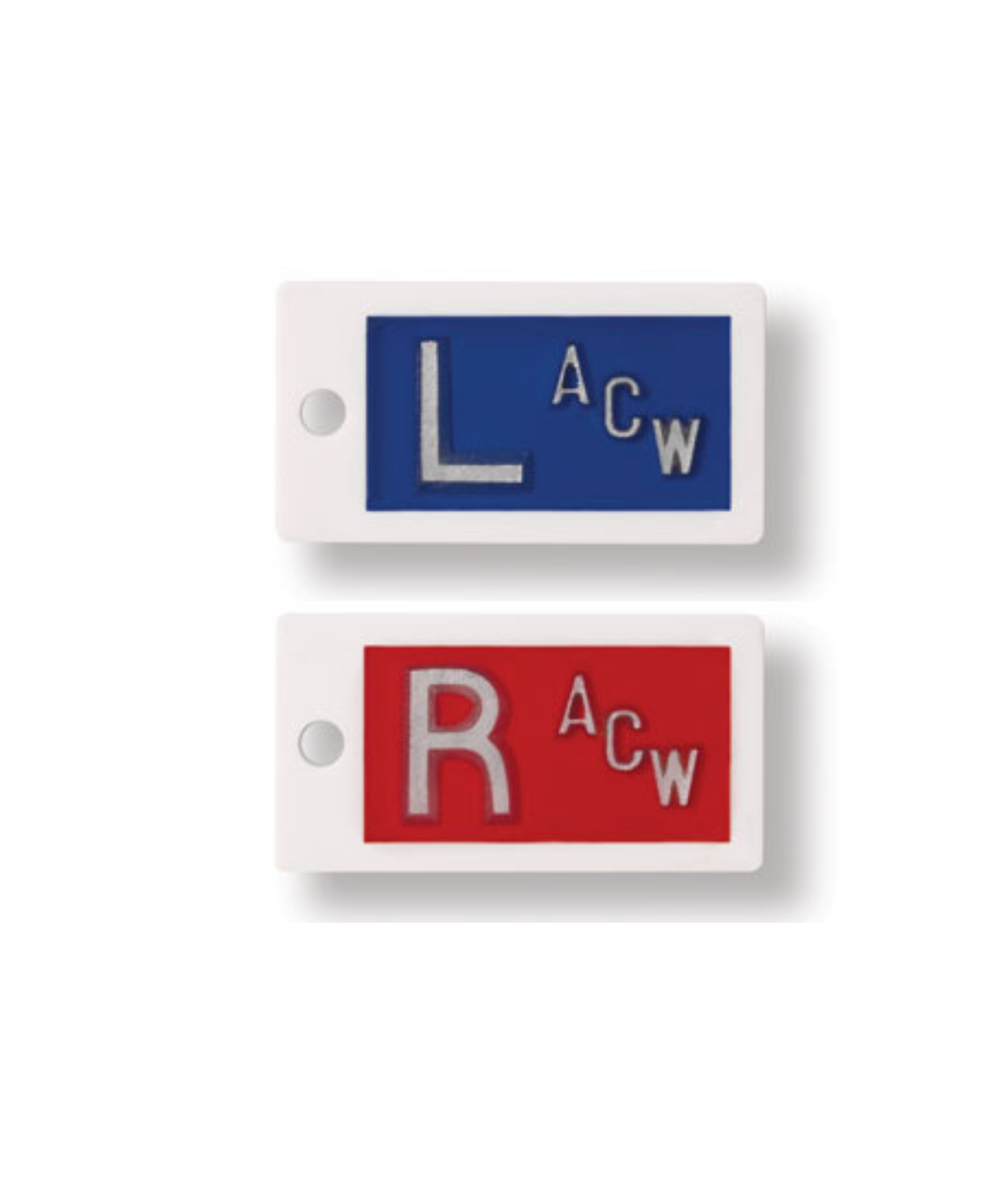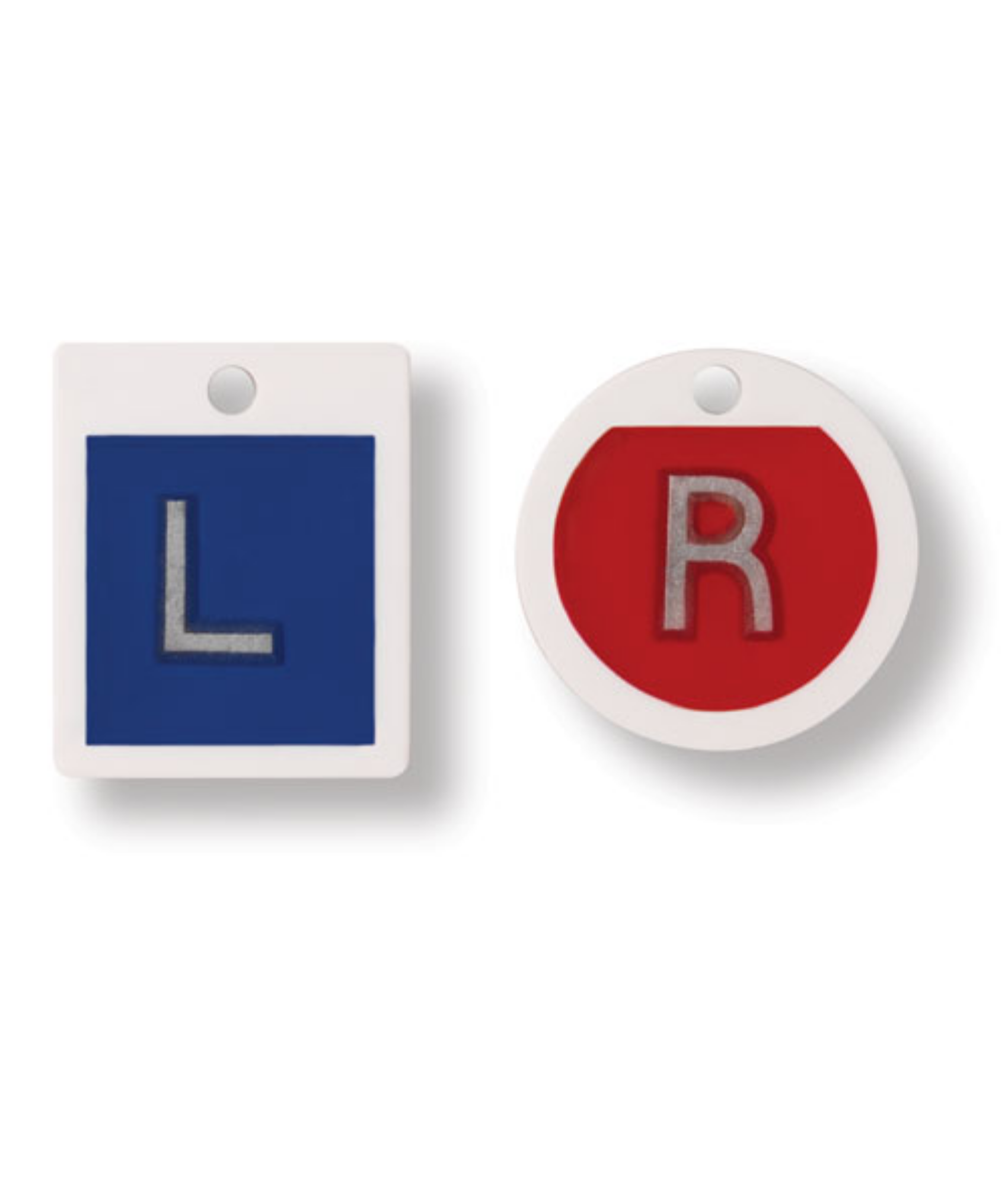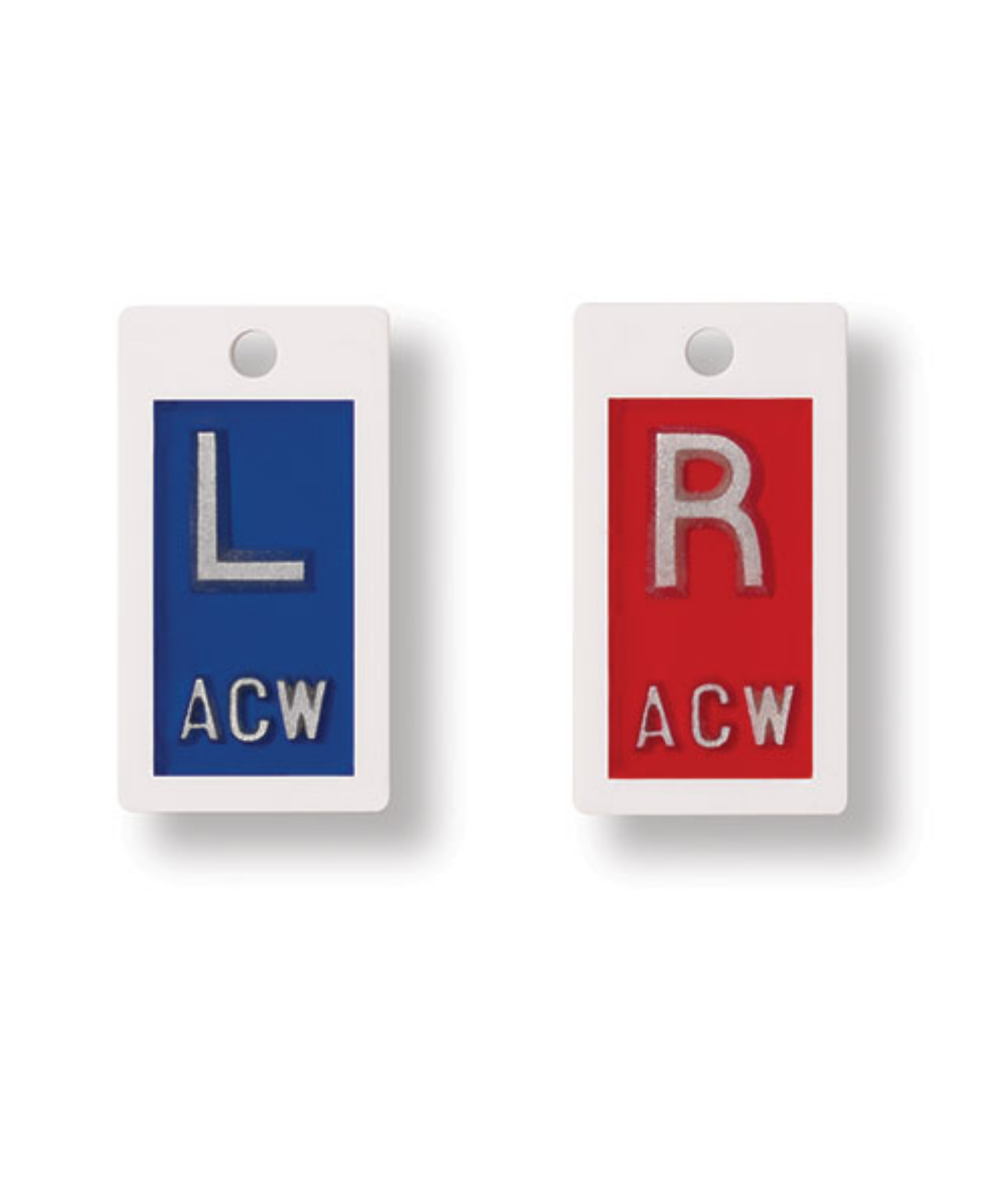 • Mark-Clear Markers: These markers feature solid lead letters enclosed in a laminated acrylic plastic with a vinyl or aluminum backing, making them our highest-quality X-ray markers.