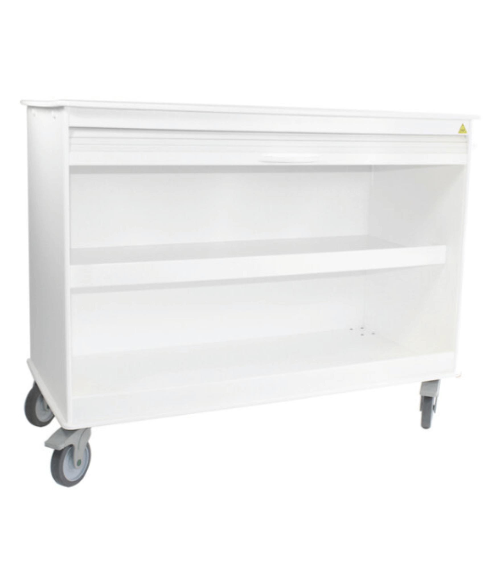 TrippNT’s MRI Cayman Lab Island Cart in White is designed for those who need a large amount of storage and workspace. The integrated locking mechanism can be locked with the use of a padlock (not included) that keeps the tambour door securely locked in place until the lock is disengaged allowing the door to roll up and into the cart. Inside the MRI Cayman Lab Island features a generous amount of storage space with a built-in shelf that lets you keep the supplies that you use most closest to your reach. The MRI Cayman Lab Island Cart is compatible for use within the sensitive magnetic imaging environment. Constructed from non-ferrous durable high density polyethylene and ABS and non-ferrous casters and screws. Ships fully assembled. All TrippNT products are made in the USA and come with a 100% Total Replacement Lifetime Guarantee.