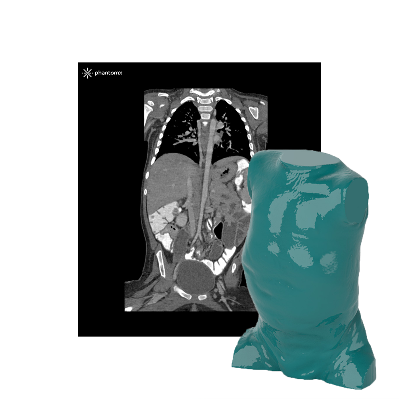 The phantom also yields realistic tissue contrast in X-Ray imaging. Air voids are filled with a cellulose-polymer composite of approximately -80 Hounsfield units.