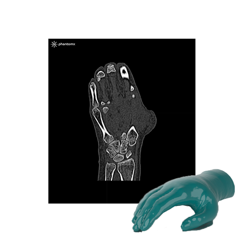 The phantom also yields realistic tissue contrast in X-Ray imaging. Air voids are filled with a cellulose-polymer composite of approximately -80 Hounsfield units.