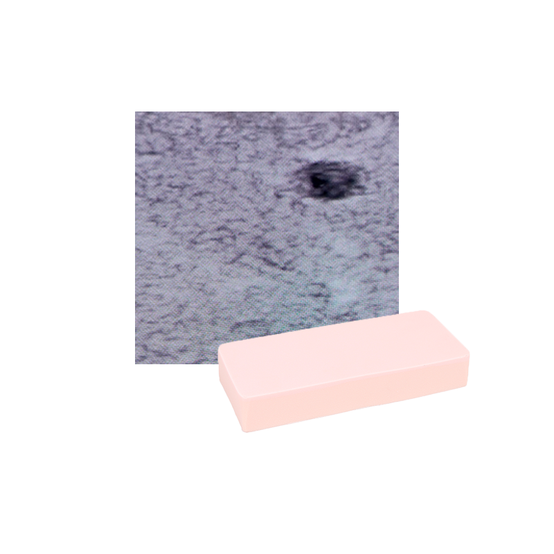 If the phantom is primarily required for CT imaging at different tube voltages (e.g., 100 kVp), the calibration of Hounsfield units can be adapted accordingly upon request. The phantom also yields realistic tissue contrast in X-Ray imaging. Air voids are filled with a cellulose-polymer composite of approximately -80 Hounsfield units.