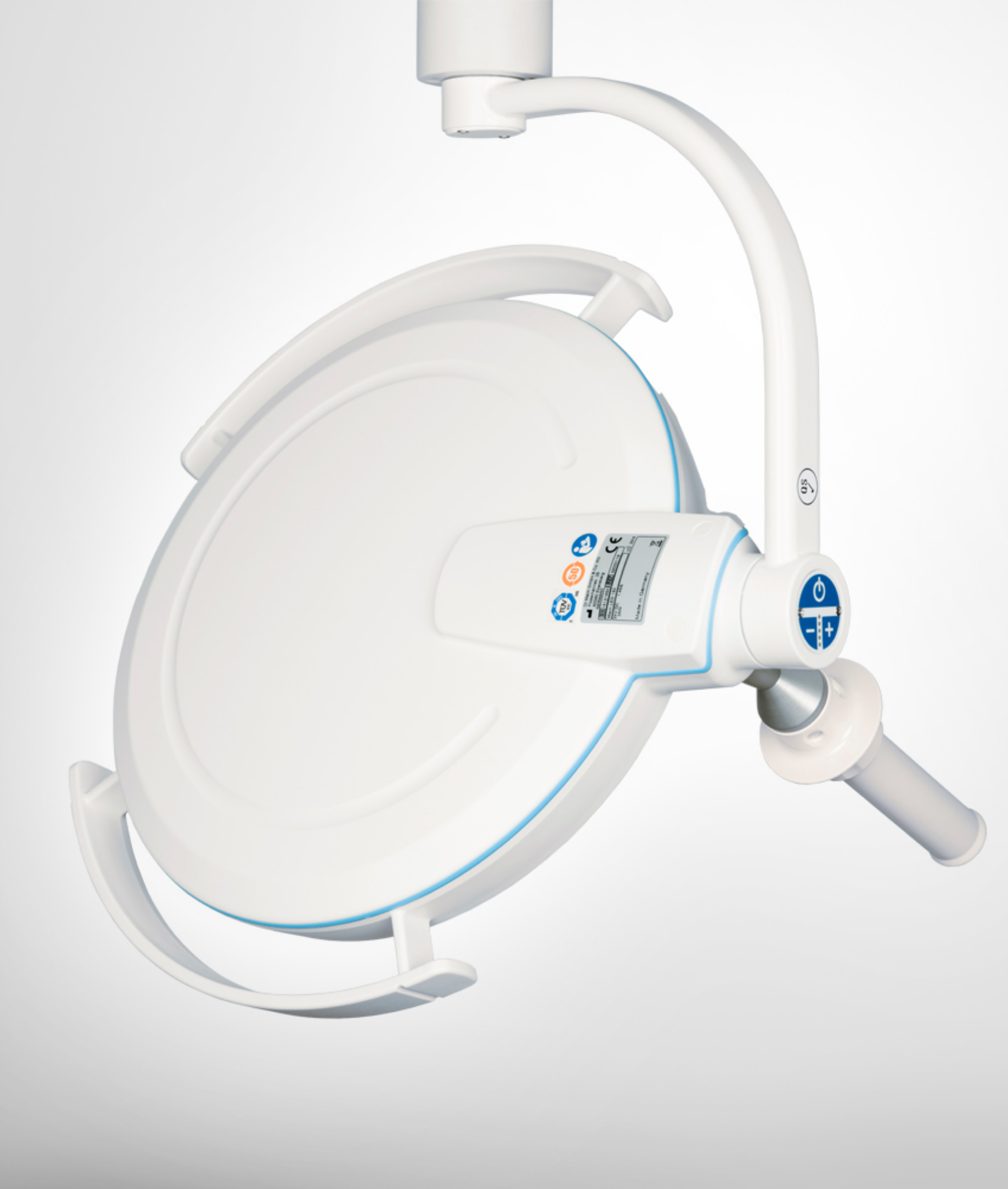 The LED150F is intuitively controlled by means of the side-mounted control panel and the sterilisable handle.