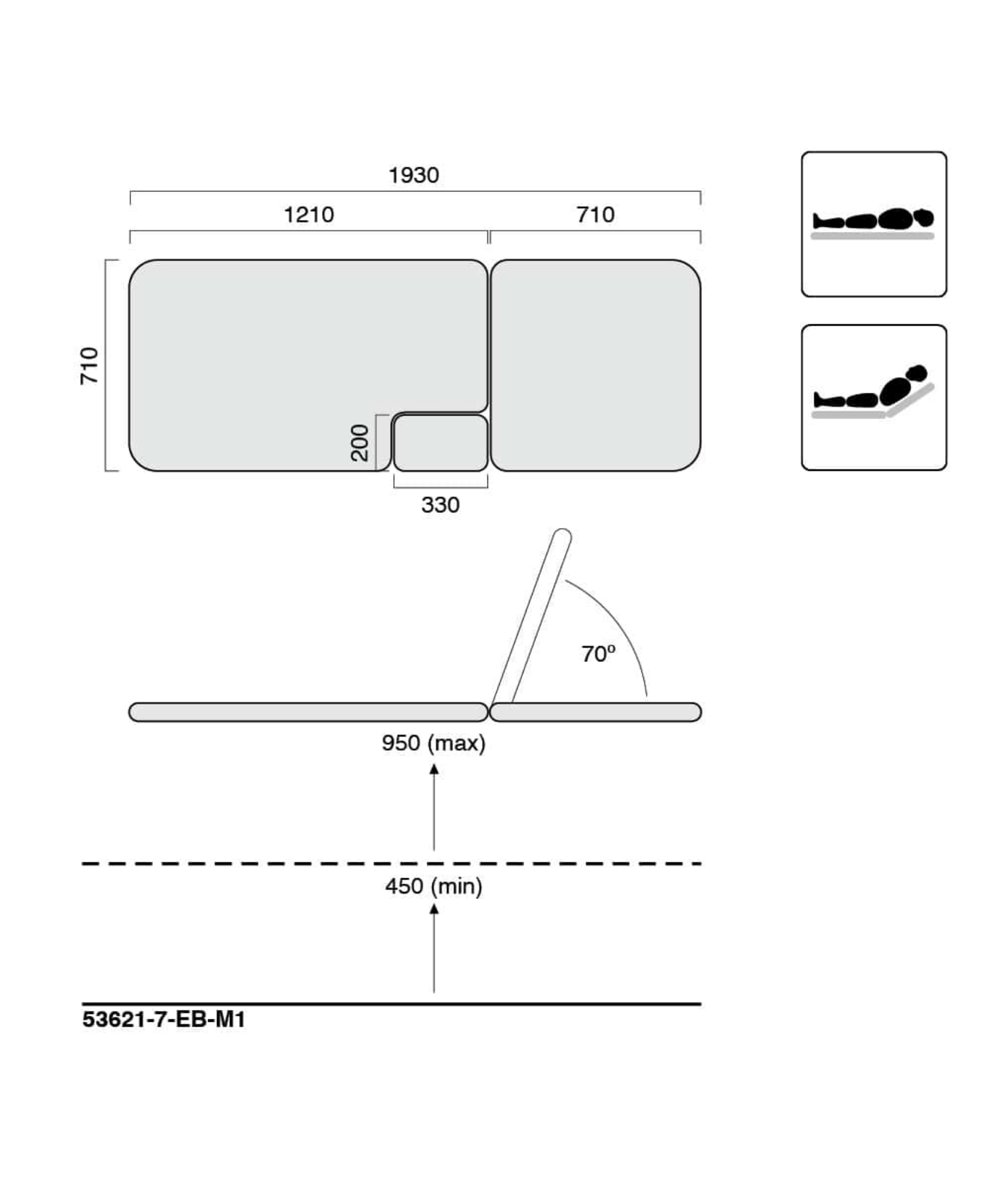 This section table is standard with an electrically operated Back Rest that can be adjusted from flat to +70º enabling a comfortable seated or semi-reclined position for the patient and fill section to allow the table to be a full examination table when required.