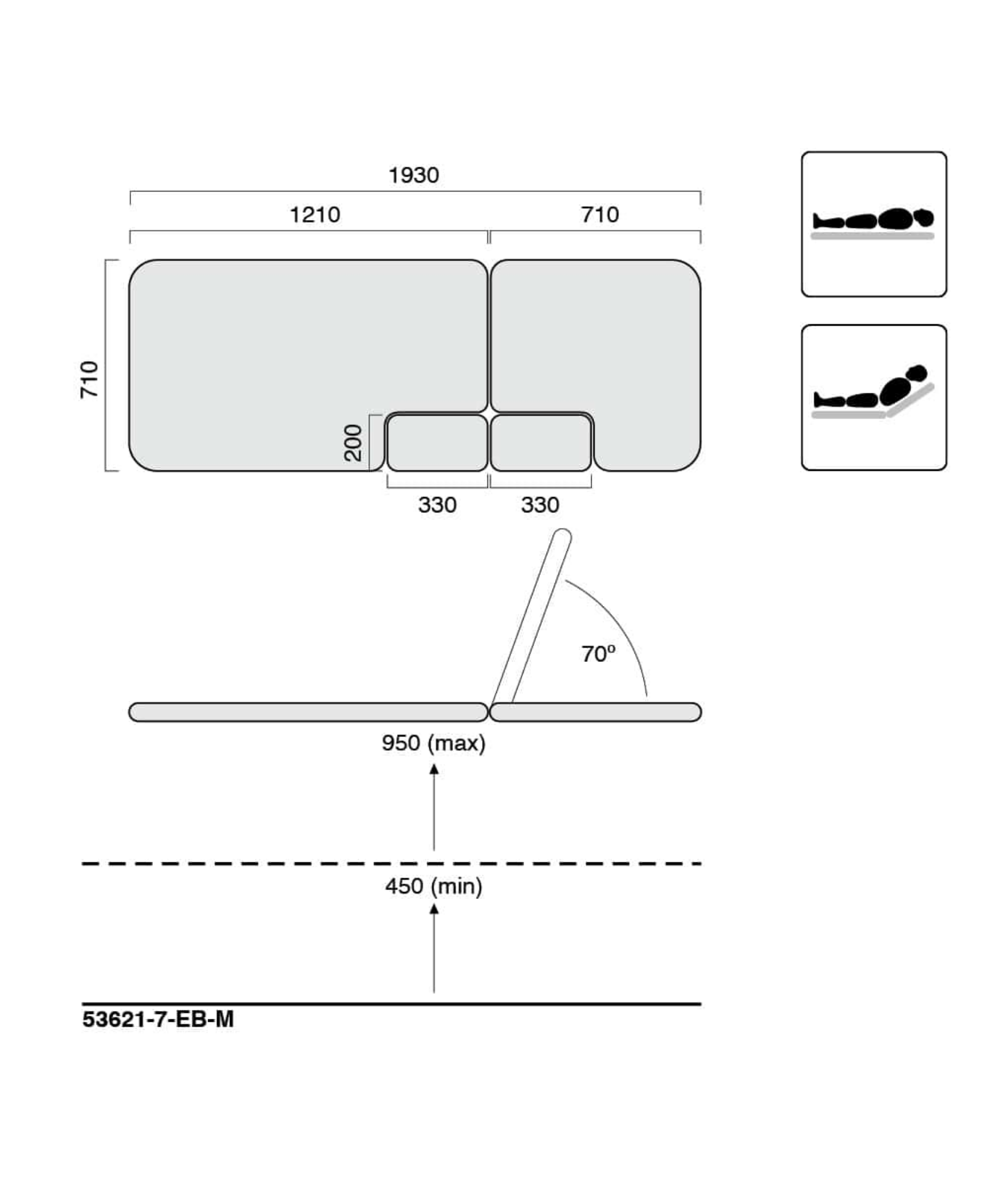 This section table is standard with an electrically operated Back Rest that can be adjusted from flat to +70º enabling a comfortable seated or semi-reclined position for the patient and fill section to allow the table to be a full examination table when required.